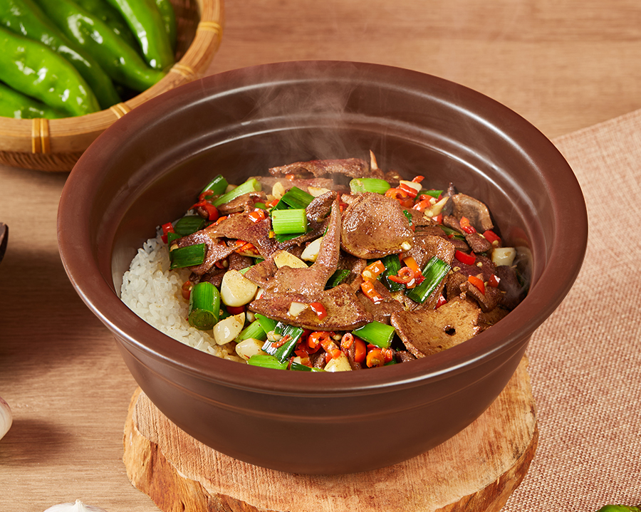 爆炒猪肝紫砂煲拌饭